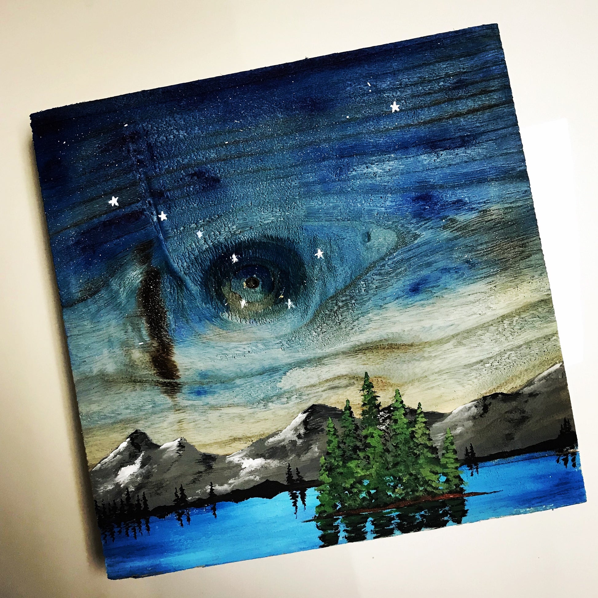 Alaska starry sky barnwood painting