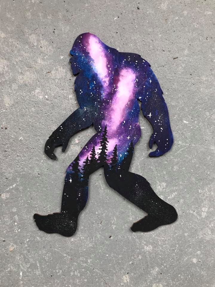 Bigfoot purple wood cutout painting big foot Sasquatch yeti