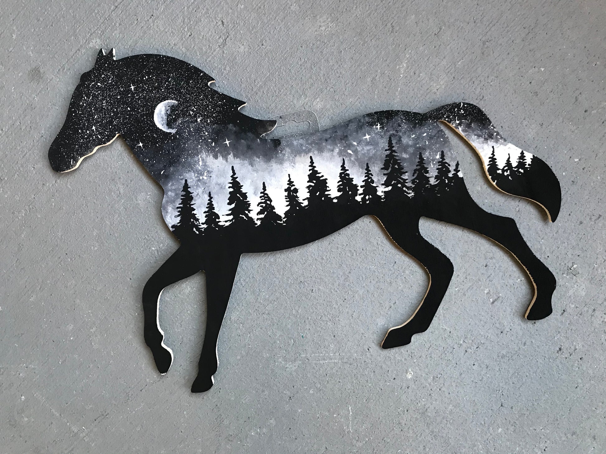 Black and white horse cutout painting