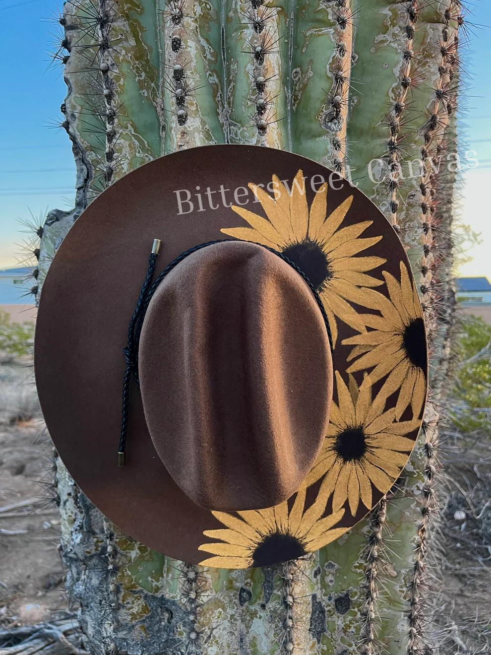 Western sunflower hat brown felt wide brim rancher hat