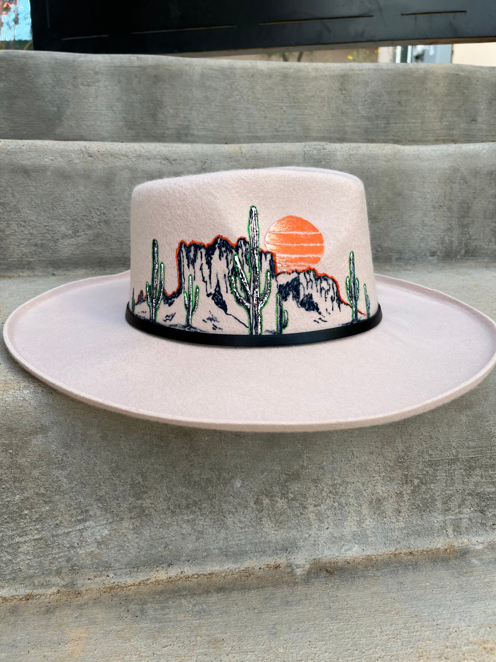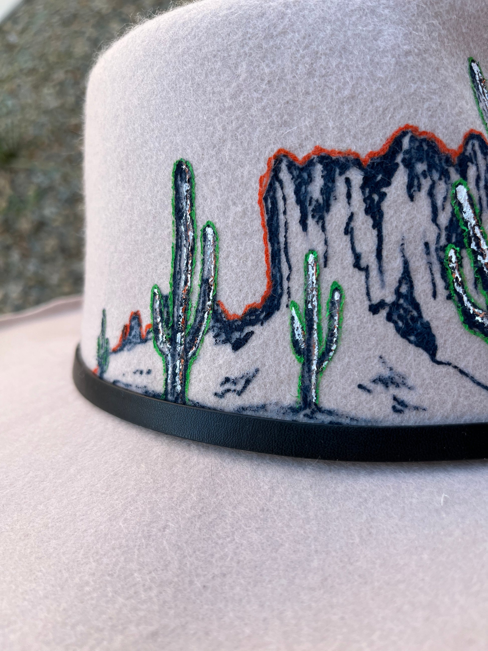 Superstition mountains Arizona desert ivory suede wide brim rancher hat