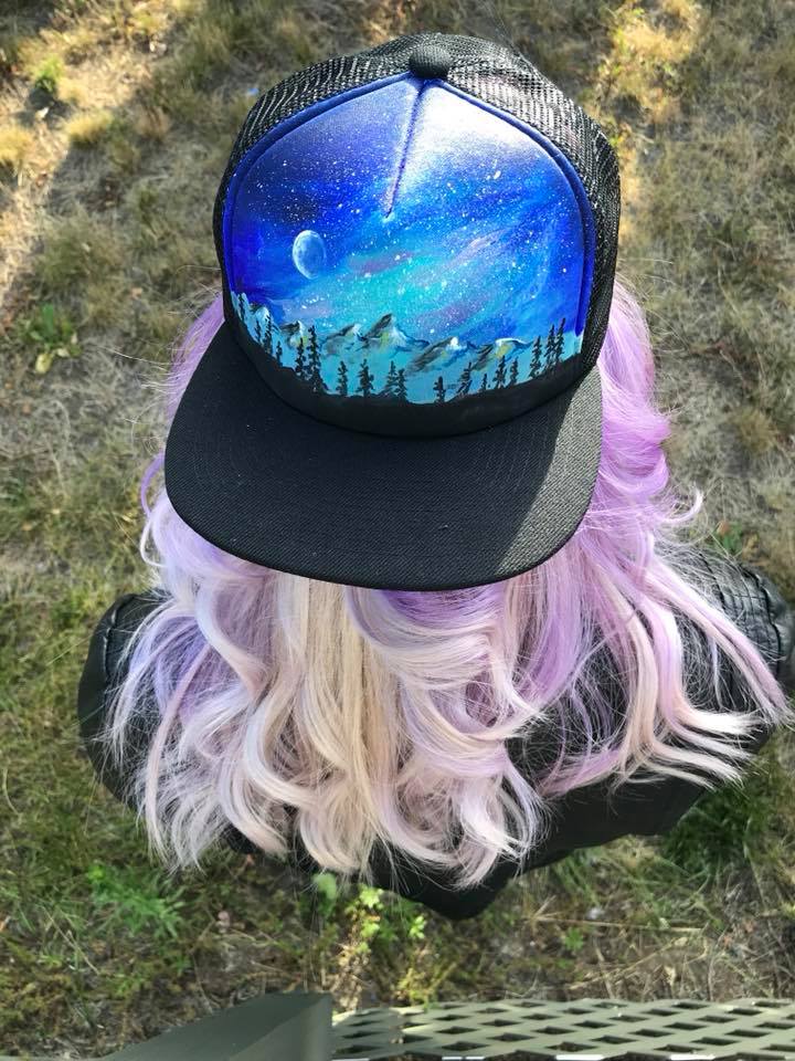 One of a kind handpainted adjustable snapback hat.