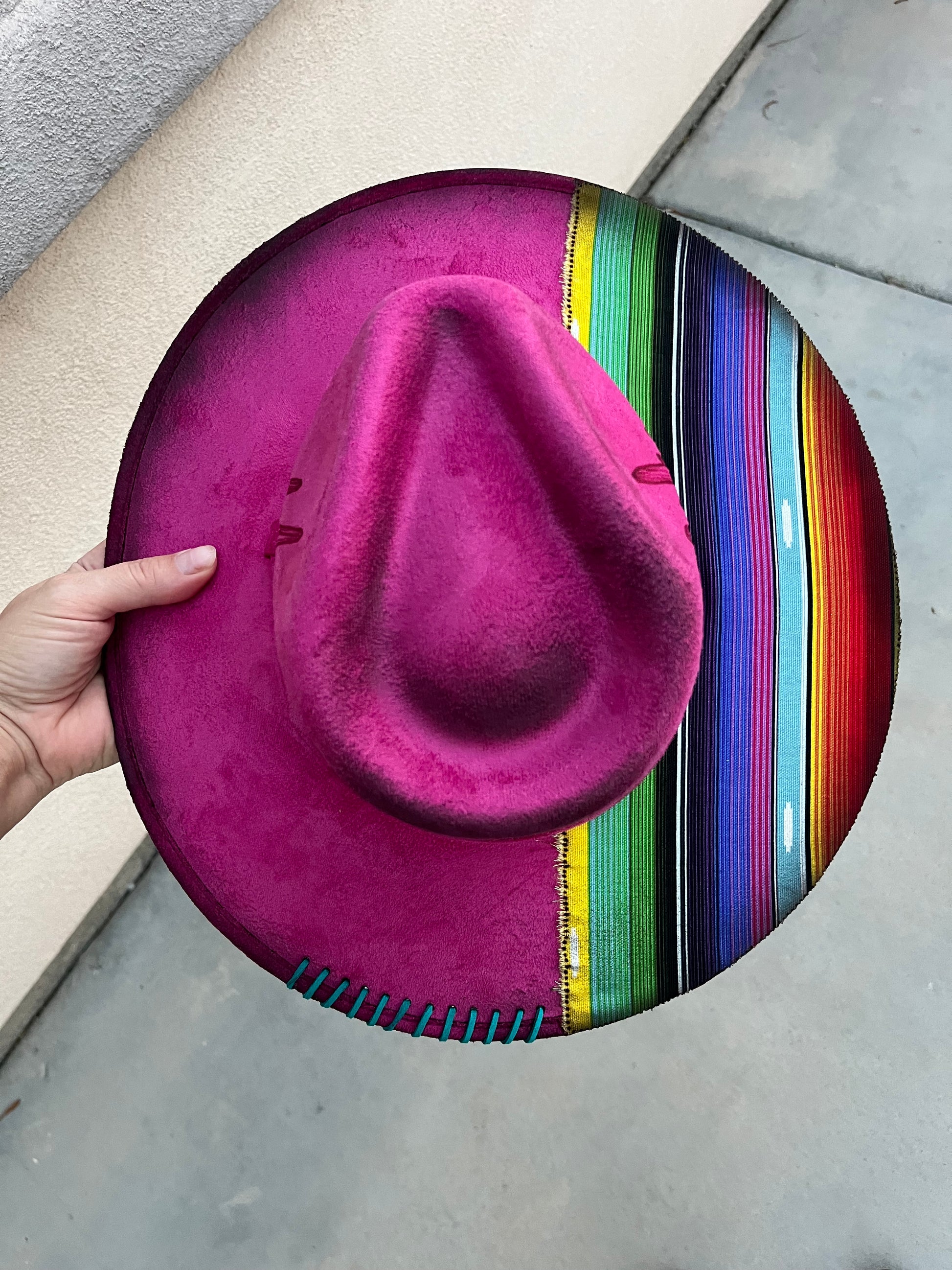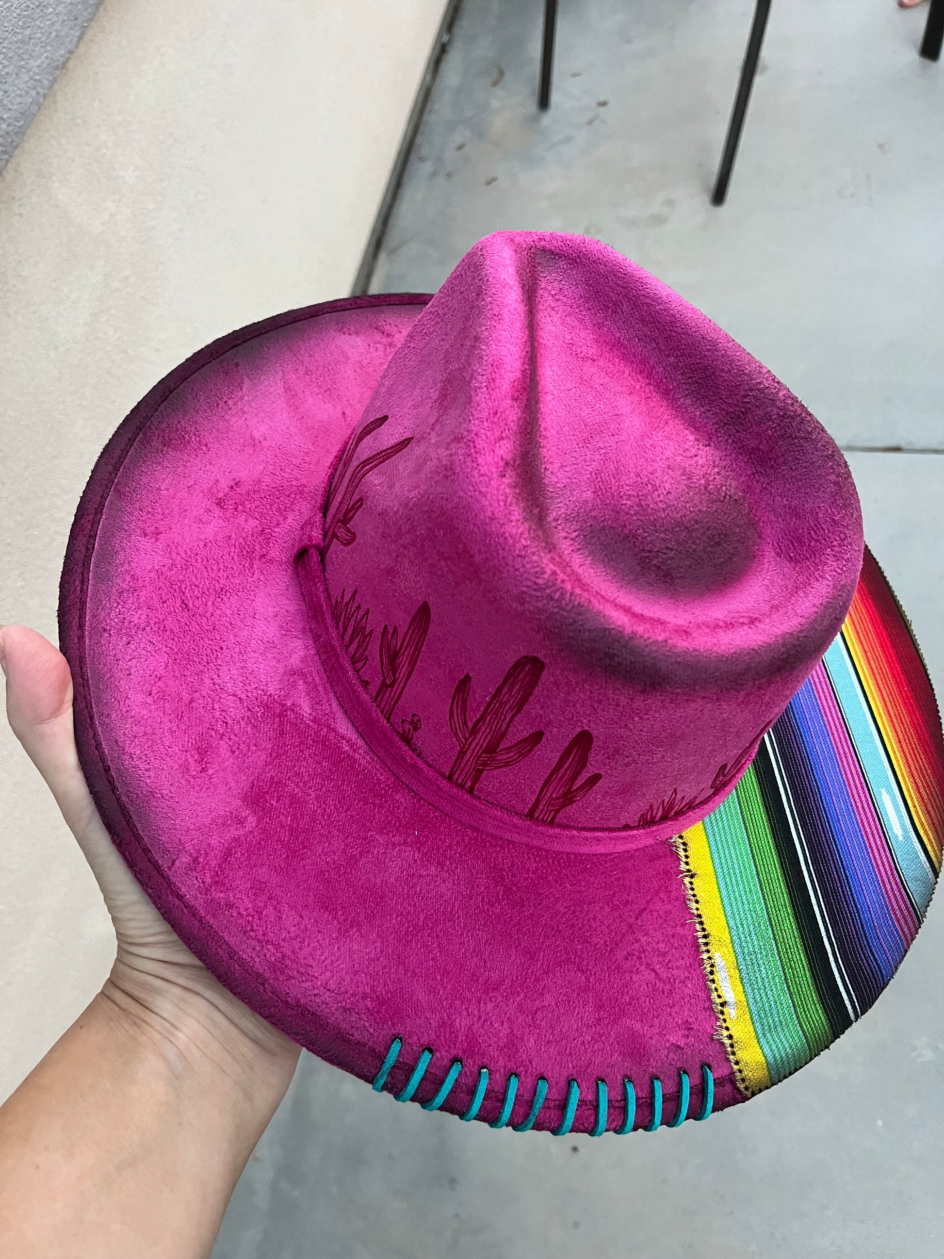 Fuschia serape cactus suede wide brim rancher hat