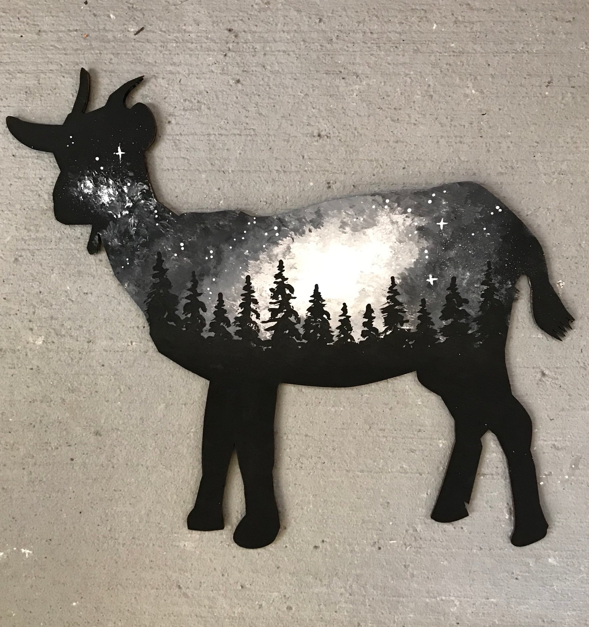 One of a kind goat cutout painting.