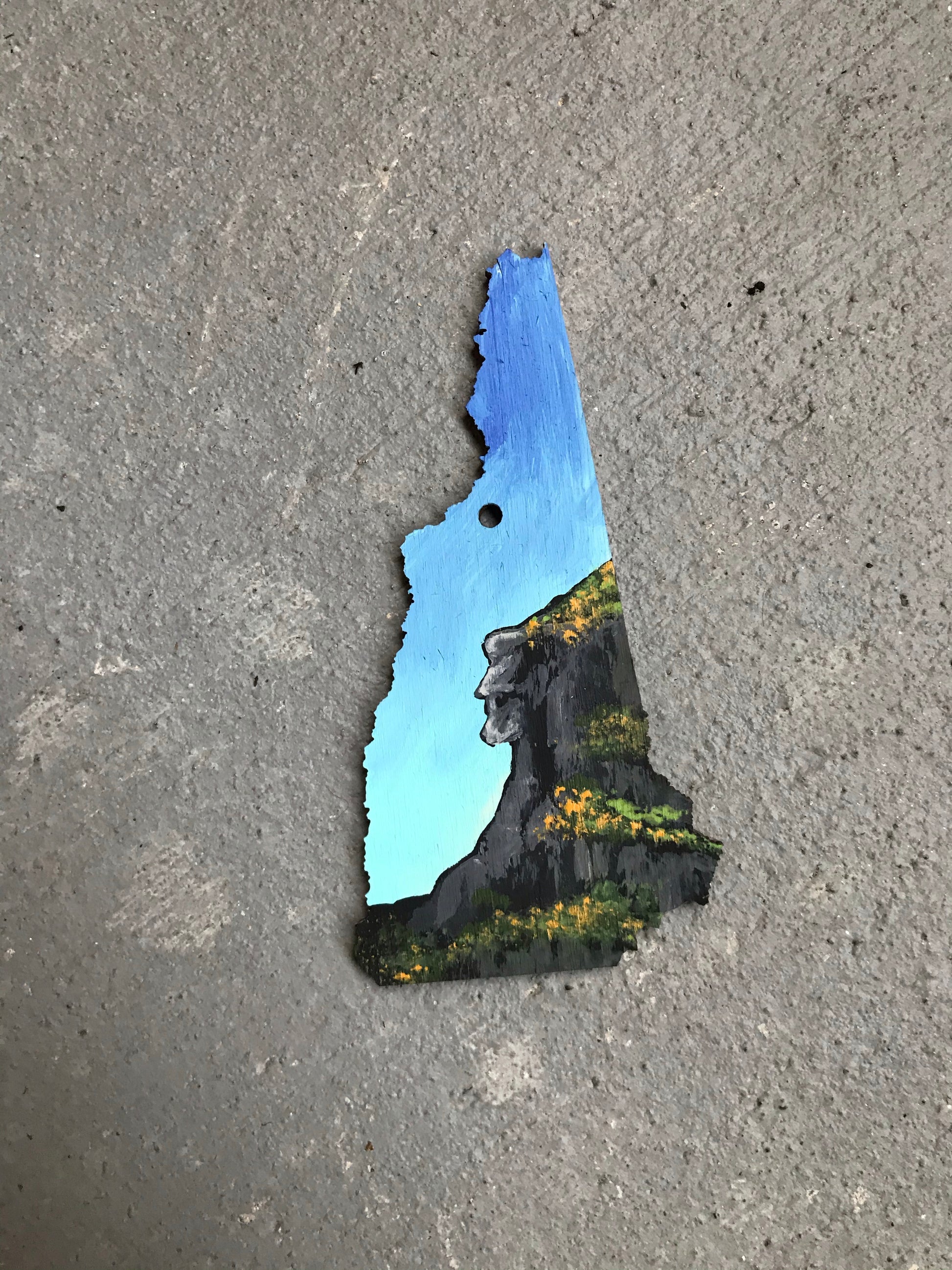 This handmade painted ornament would make the perfect addition to any Christmas tree. It makes a perfect gift for a friend, parent, etc, to commemorate a favorite place. It made of Baltic birch plywood, roughly 4” in size, and comes with a ribbon for hanging.