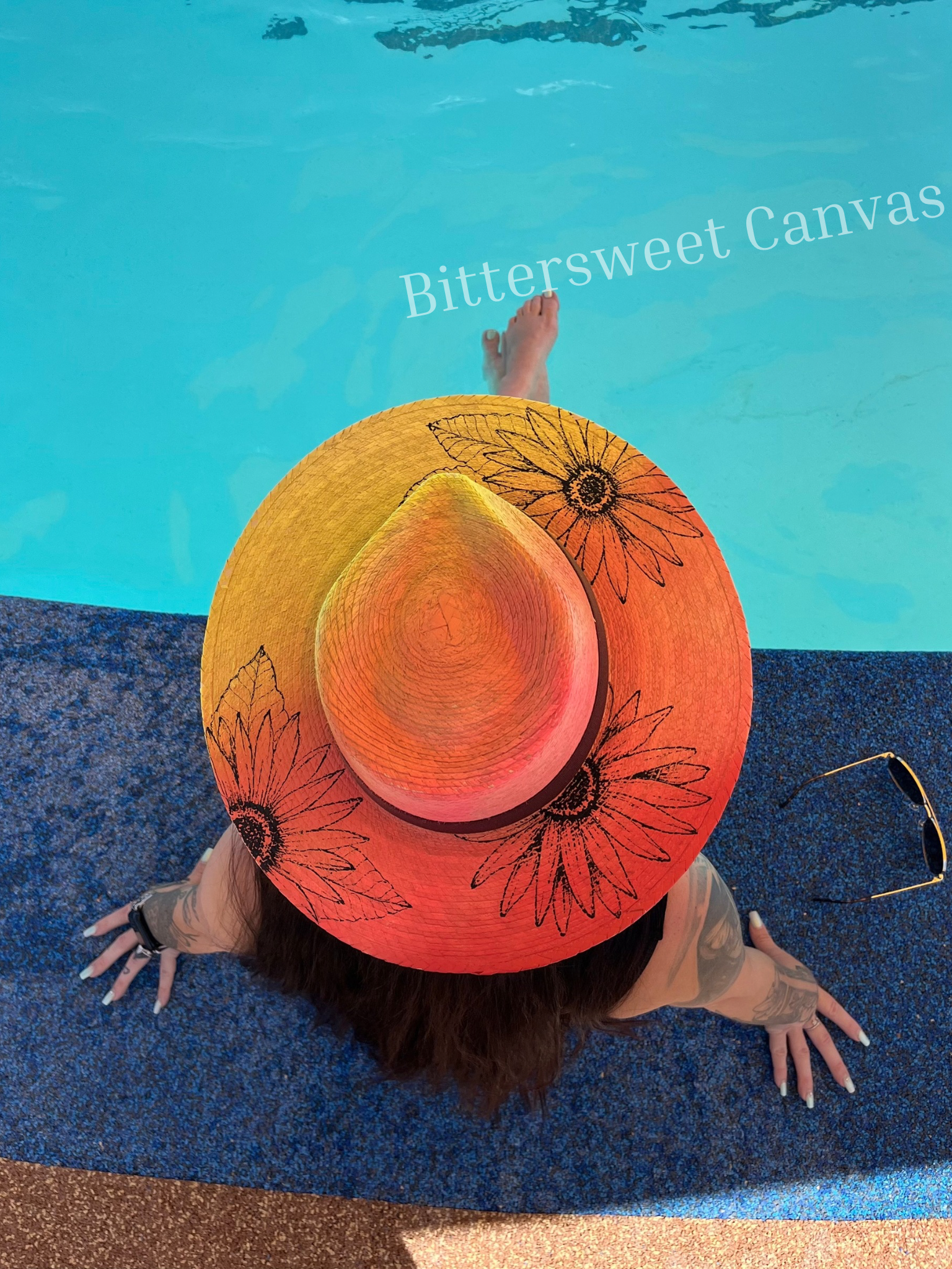 This handmade painted hat would make the perfect addition to any wardrobe. It is a wide brim hat. Vegan suede.