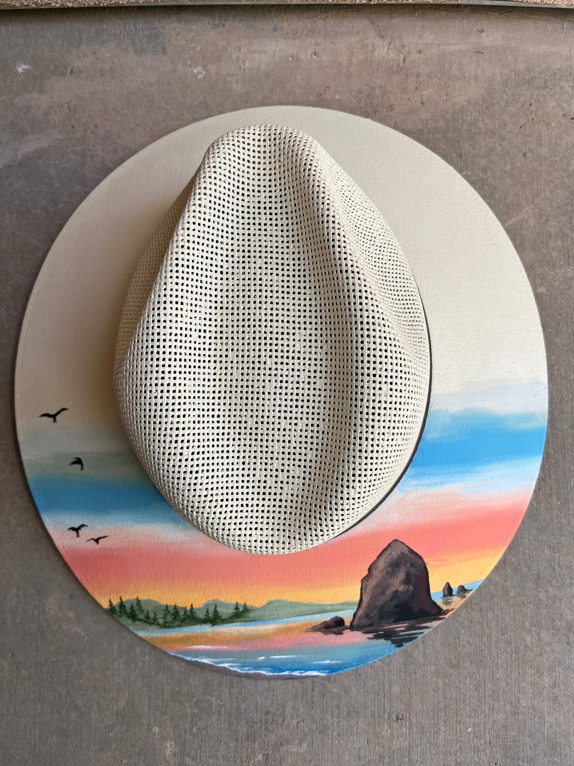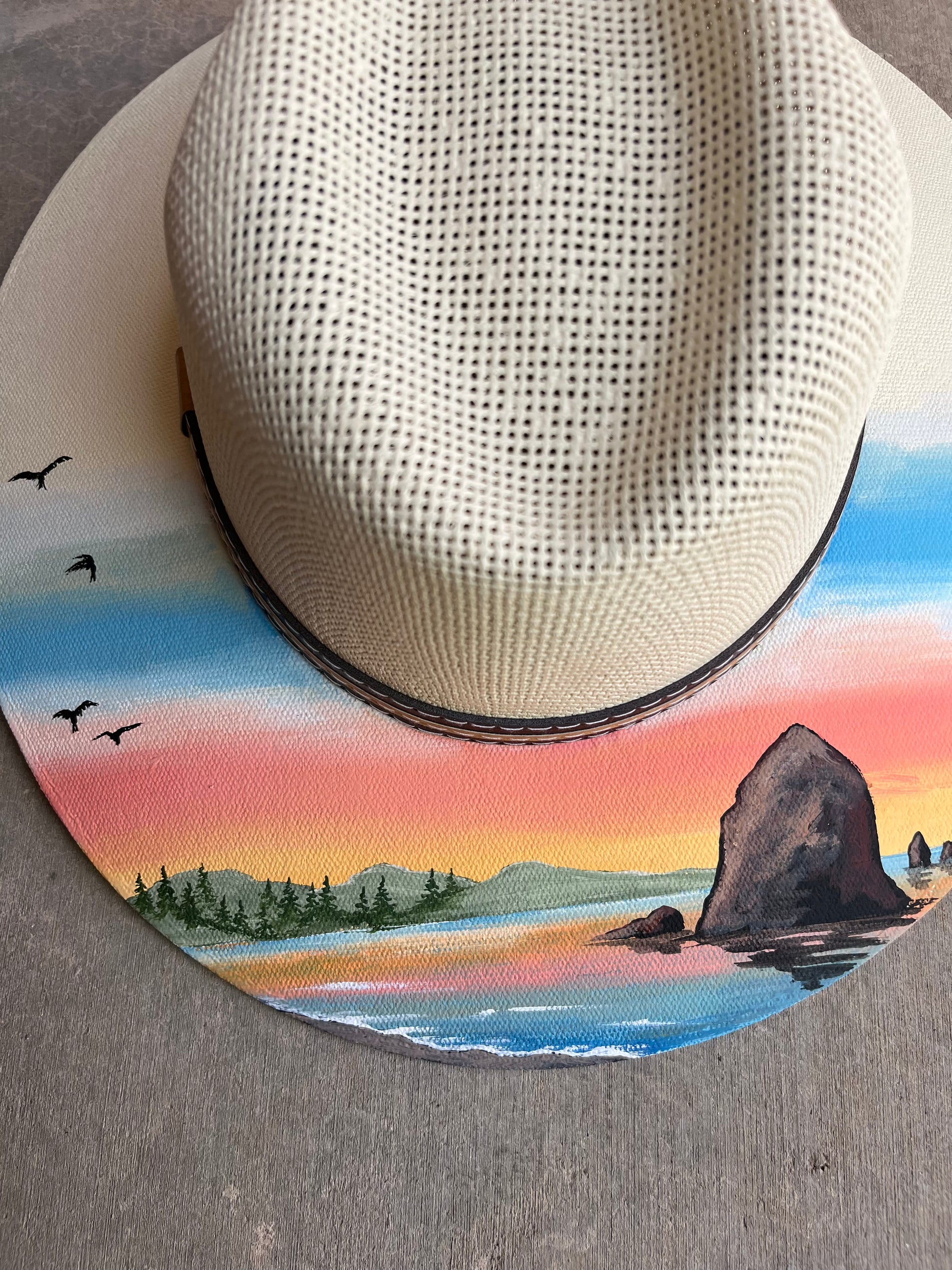 Oregon coast haystack rock cannon beach summer straw jute rancher Panama hat