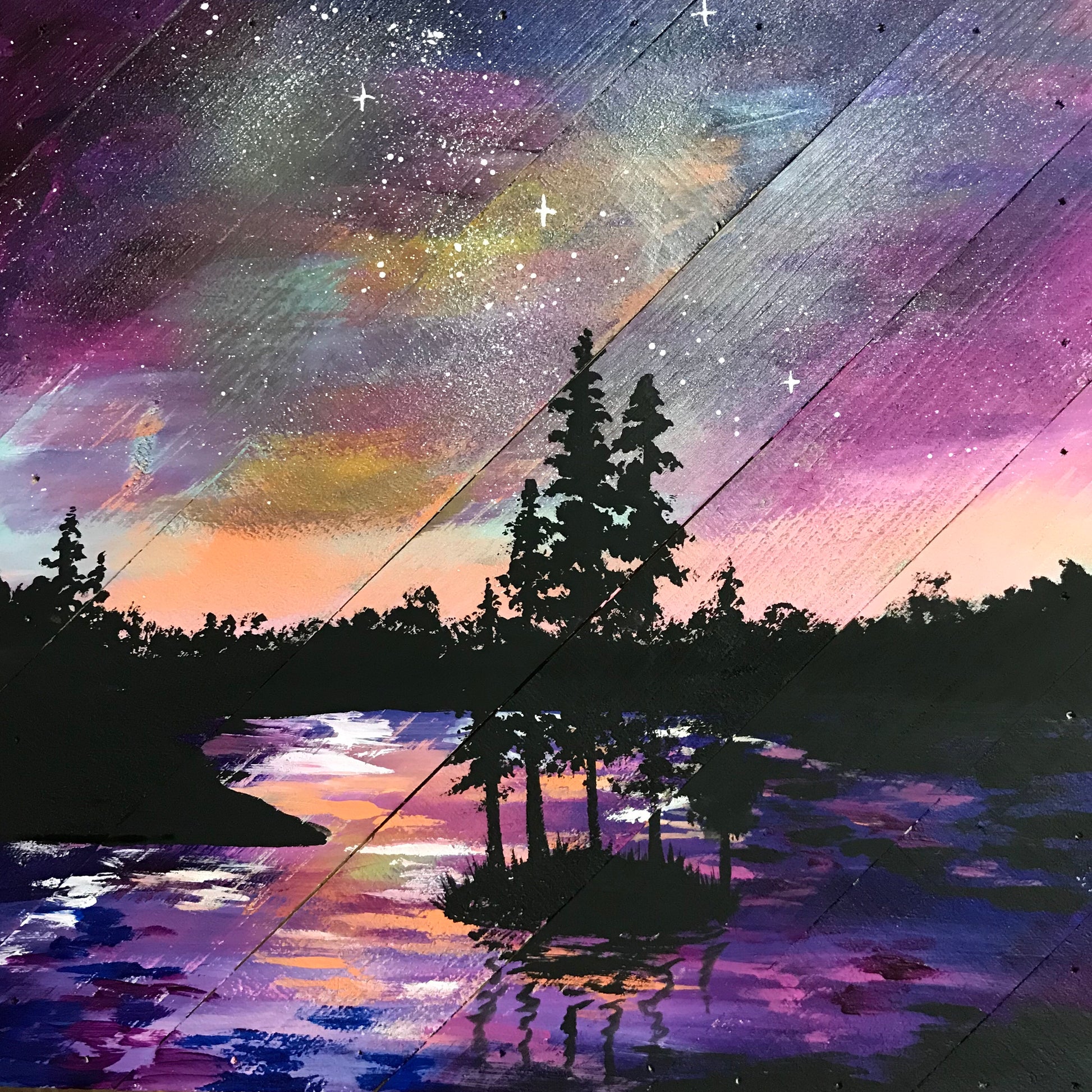 One of a kind galaxy painting on 12x12” pallet canvas.