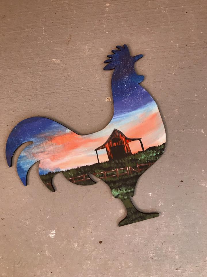 Rooster Chicken wood cutout painting