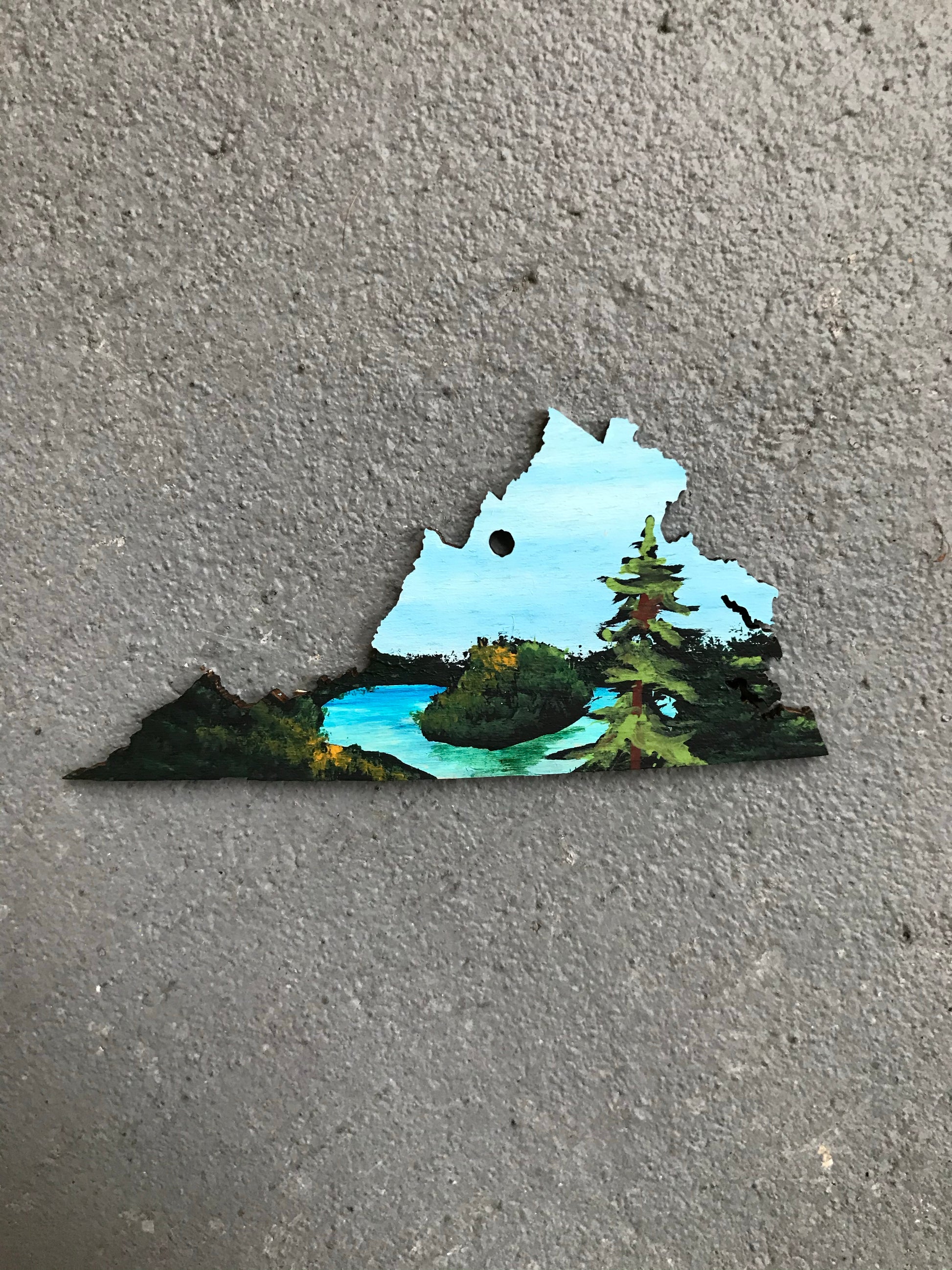 This handmade painted ornament would make the perfect addition to any Christmas tree. It makes a perfect gift for a friend, parent, etc, to commemorate a favorite place. It made of Baltic birch plywood, roughly 4” in size, and comes with a ribbon for hanging.