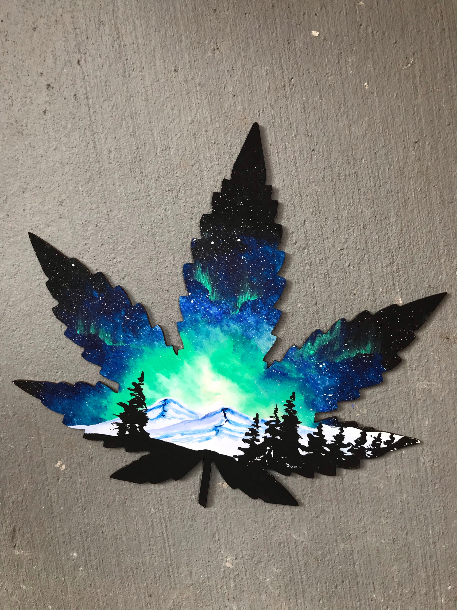 Weed pot leaf wood cutout painting